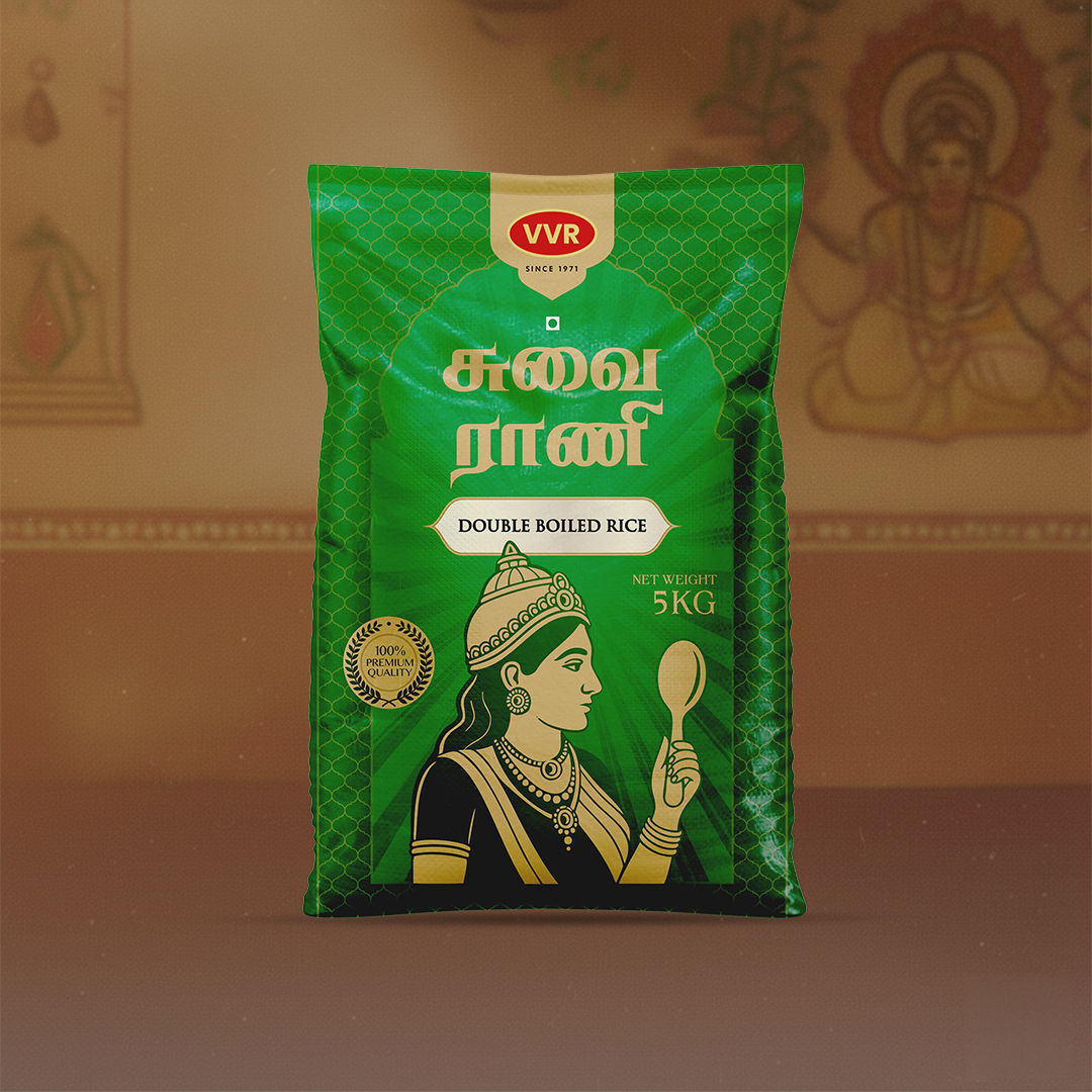 VVR Double Boiled Rice is known for its rich flavour, firm grains, and superior nutritional value. Processed through a traditional double-boiling method, it retains essential nutrients and ensures every grain stays non-sticky and wholesome — a healthy choice for everyday meals.